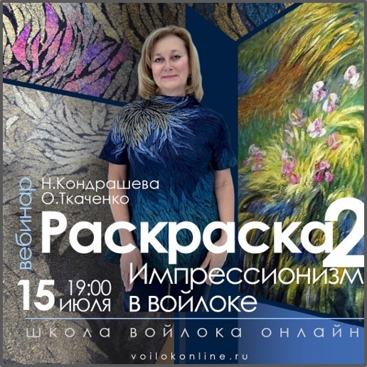 Мастера Наталья Кондрашева и Оксана Ткаченко представляют видеозапись вебинара «Раскраска 2. Импрессионизм в войлоке». Предлагаем вместе с нами погрузиться в мир красок, живописных полотен и разрешить себе побыть художником, а на кого из художников равняться, решать только вам!